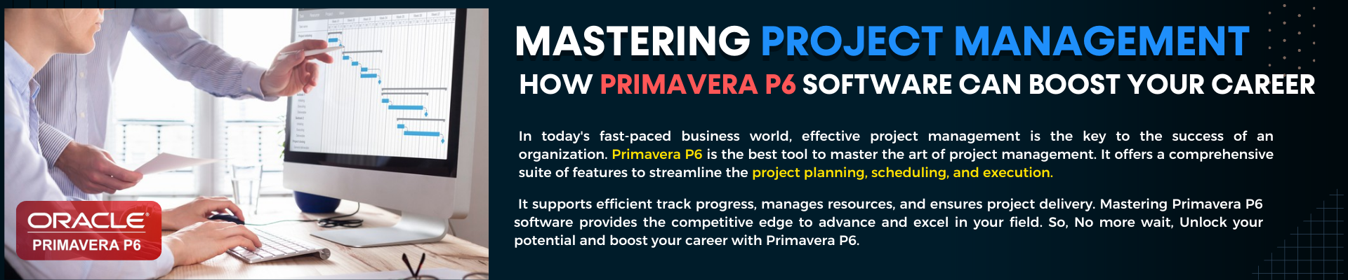 - Master the fundamentals of project management and understand the role of Primavera P6 in the project lifecycle.