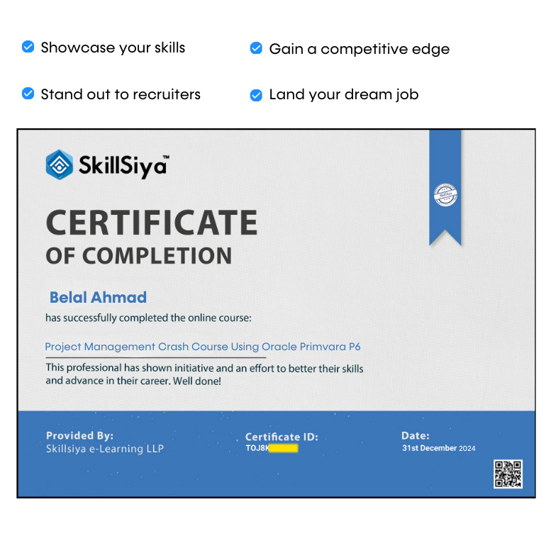 - Apply your knowledge in practical scenarios by working on real-life project examples using Primavera P6.