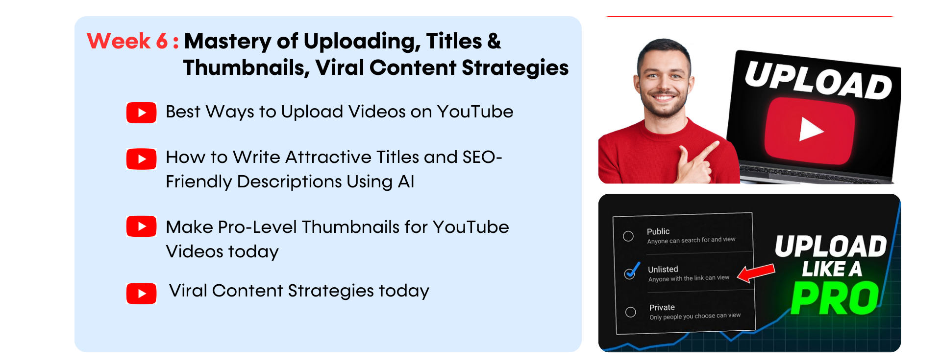 Week 6: Mastery of Uploading, Titles & Thumbnails, Viral Content Strategies